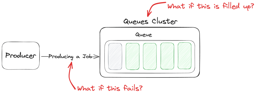 When implementing a queueing system, it’s easy to forget that the async benefits only apply after the jobs are dispatched to the queues. The dispatching, itself, is almost always a sync process. If that fails, our systems might return errors to the users. And there are other ways of producing errors besides bugs in the code.